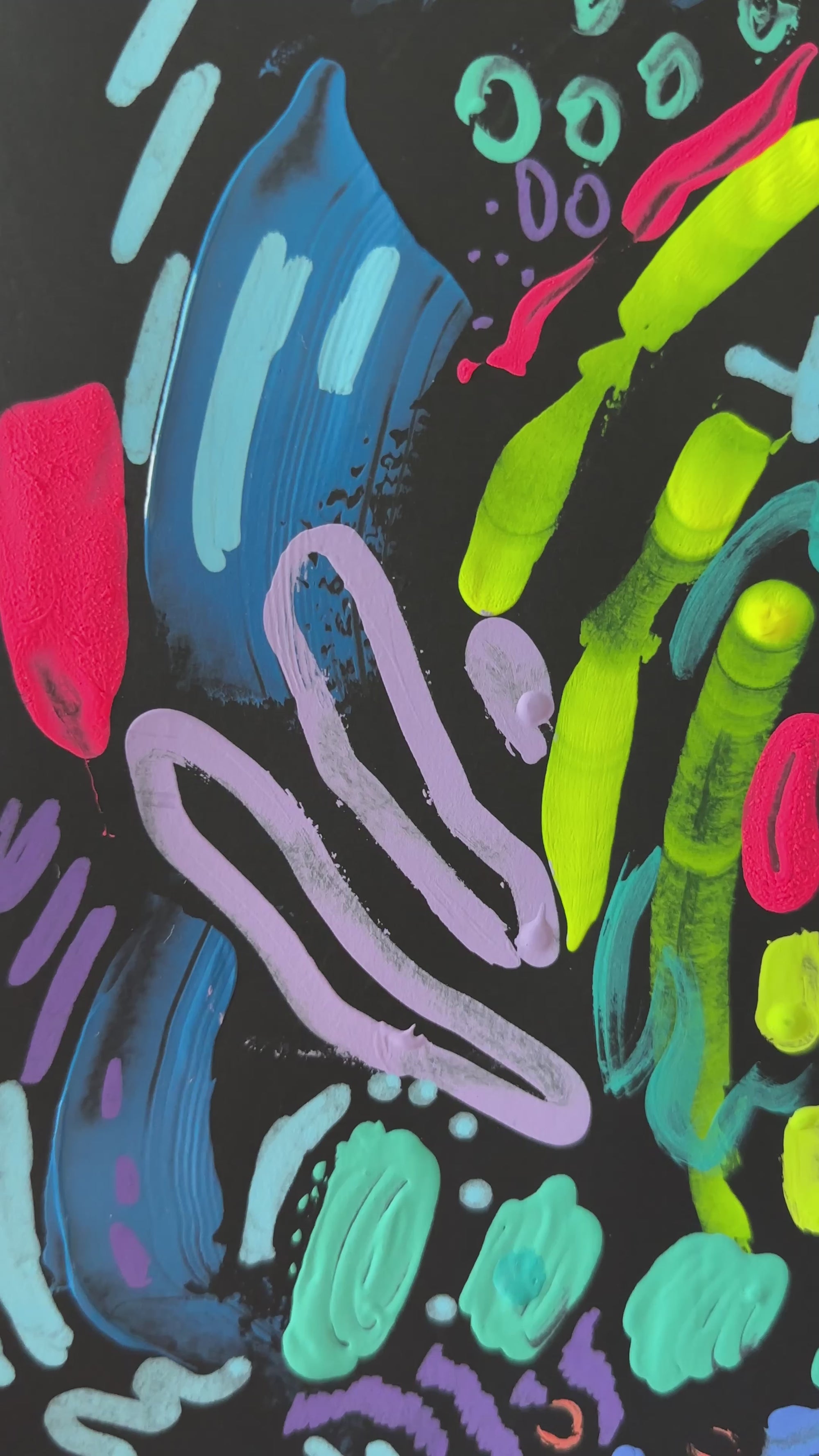 Crafted with intuitive, free-flowing brushstrokes, these paintings radiate energy and positivity. The contrast between the vivid colors and the dark background invites you to explore the depth and complexity of emotions, reminding us that even in the darkest moments, light always finds a way.